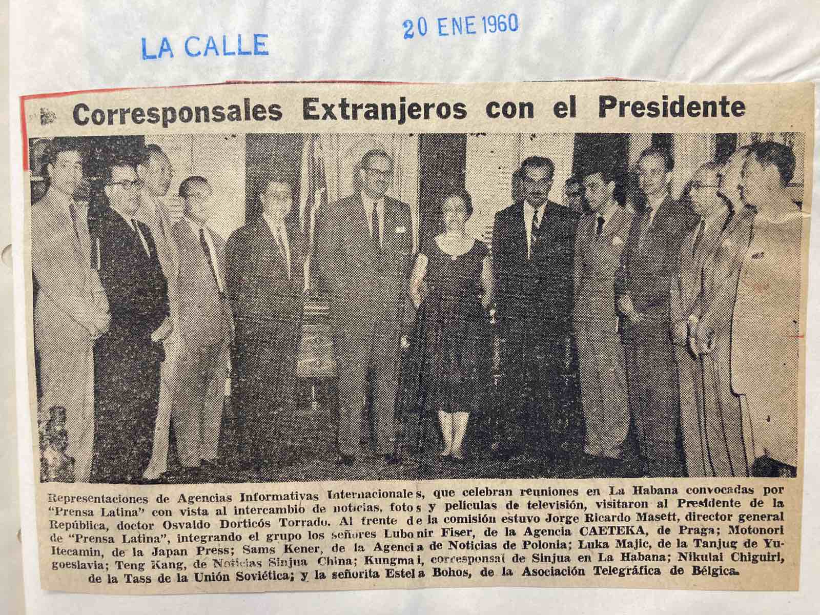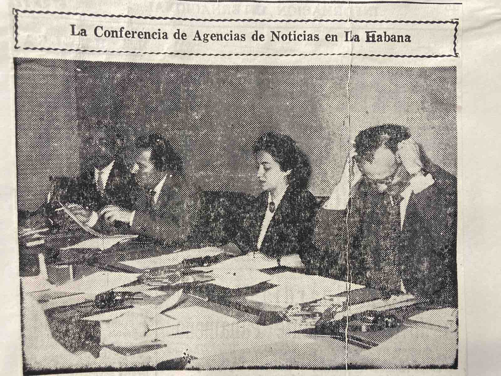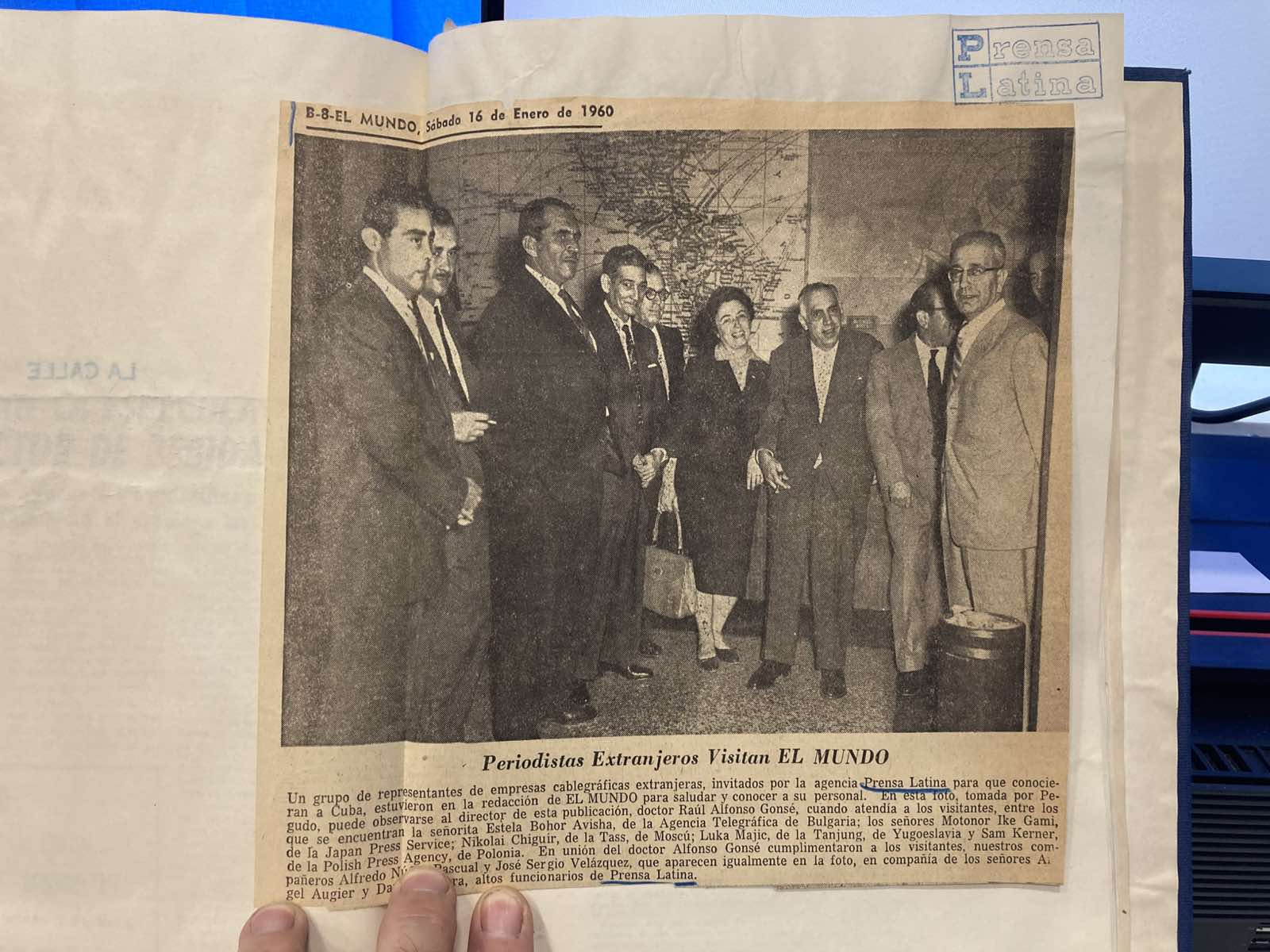 Друга архивна вестникарска снимка от кубинския вестник „Ел Мундо“, също предоставена от архива на БТА, показва гостуване на чуждестранните журналисти в редакцията на този всекидневник и среща с директора му Раул Алфонсо Гонсе. Точно до него отново е Стела Авишай.